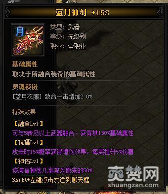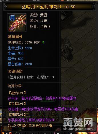 按照上述公式,就能合成圣皓月·蓝月神剑II,下面再让我们看一下它有哪些独特的属性和特殊效果吧。