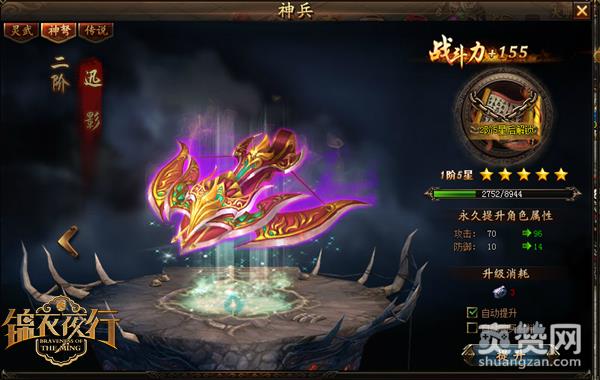武器的选择决定了你的输出以及生存方式。在《锦衣夜行》中,远近战斗形态的选择只是在这游戏中生存的一部分,将武器进行升级或者获得更强大的武器也是生存的必备。《锦衣夜行》给玩家提供了武器升级的选项,只需要消耗一定百炼金钢就能将武器进阶,进阶到一定程度外观和效果都会得到提升。而部分幸运的玩家参加活动也能获得绝版的神兵,你是那个幸运玩家吗?
