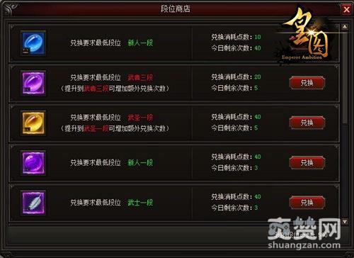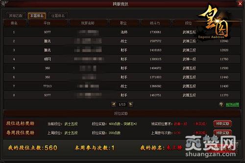 9377《皇图》玩家通过参与1V1跨服段位赛可获得段位积分,通过段位积分来决定你所在的段位;玩家通过9377《皇图》1V1跨服段位赛可获得段位点数,使用段位点数可在段位商店兑换珍稀道具;玩家达到要求的段位可领取段位达标奖励;玩家每周参与足够的次数,可领取每周段位奖励。