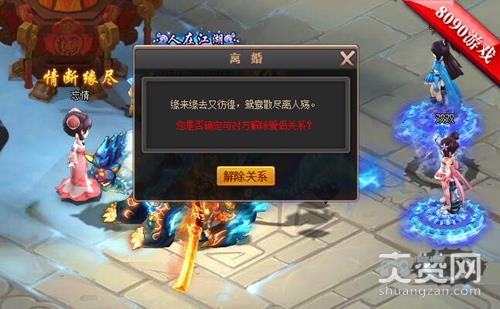 离婚在8090少年群侠传中只需要夫妻一方前往忘情NPC处就可以啦,点击解除关系从此以后男女双方男婚女嫁各不相干,相濡以沫不如相忘于江湖,做一个好的有素质的ex也是很重要的哦。