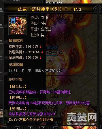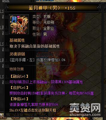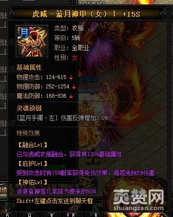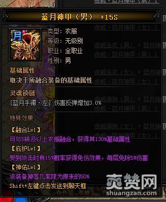 按照上述公式,就能合成虎威·蓝月神甲I,下面再让我们看一下它有哪些独特的属性和特殊效果吧。