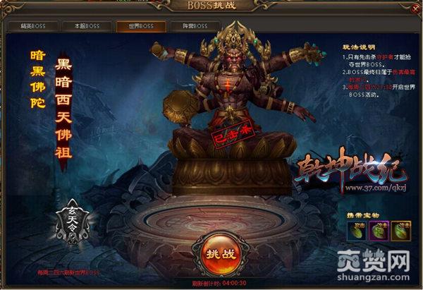 在37《乾坤战纪》的世界BOSS系统中,玩家需击杀第5只本服世界BOSS,才可以获得“玄天令”入场券,拥有“玄天令”的宗门可参与击杀世界BOSS,世界BOSS最终归属于伤害值最高的宗门,每周二四六21:30开启世界BOSS活动。
