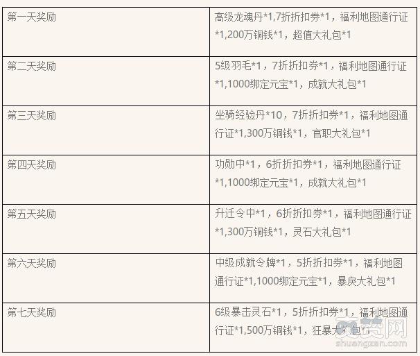 活动内容:玩家登陆游戏即可获得7登奖励(每个账号只能获取一次)