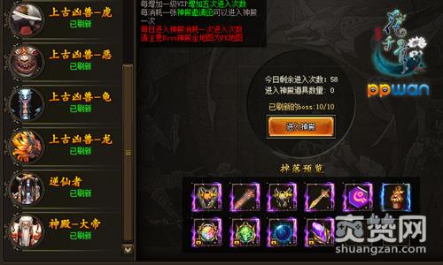 对于非VIP的玩家,每天可以进入ppwan《花千骨》BOSS神殿五次。而对于VIP玩家,每增加一级VIP将增加五次进入BOSS神殿的机会。此外,玩家每消耗一张神殿邀请函可以增加一次进入神殿的机会。为了丰厚的奖励,众位仙友得把握好次数哦!