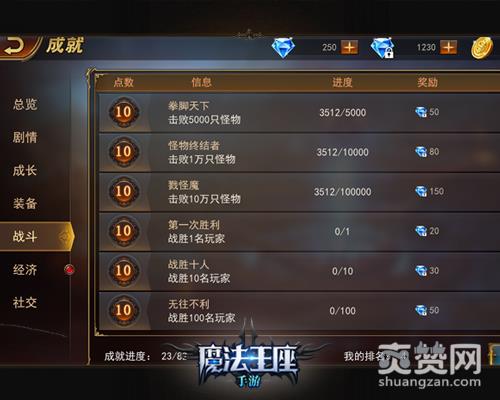 在《魔法王座》手游当中,玩家初入游戏后不久,即可开启“成就系统”——该系统开启后,玩家可随时通过系统功能菜单左下方的“成就”按钮进入成就系统界面,并在其中查看自己的成就进度。