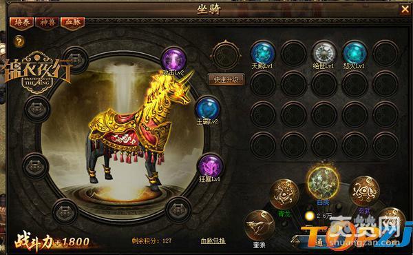强悍的坐骑,不仅能上你拥有超凡的速度,更能让你拥有凌厉的霸气,立刻成为万众瞩目的焦点。战火纷争的岁月,王者不但要拥有强大的战斗力和号召力,更要有称心如意的坐骑助你杀敌征战!让它们载着你驰骋天下,为你效力吧!神兽降世,妖魔莫敌!《锦衣夜行》让你降服众多神兽,成为胯下坐骑,快骑上炫酷的它们,驰骋武侠世界吧!