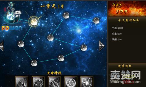 天命之星共有九重天,当仙友将一重天的九颗星全部激活后就可以进入第二重天,激活第二重天的天命之星。在ppwan《花千骨》中,每激活一颗星都会为仙友带来各种属性的永久加成。当仙友激活二重天一星时还可激活五大天命神技之一的天命之攻,可增加30%天命已激活的攻击。