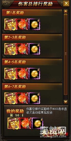 目前,基本上一个战区中的极限BOSS都需要2-3次的活动才可以砍死。不过不用担心,极限BOSS的奖励每次活动都会按照伤害排行榜发放一次,对BOSS的伤害值决定了你的奖励哦!当极限BOSS最终被击杀的时候,系统还将发放总伤害排行榜的最终奖励。奖励包括许仪专属称号将门虎子碎片、黄金琥珀石和皇家打造石,参与就有哦!最值得一提的就是,对BOSS造成最后一击的玩家将获得元宝奖励,这才是最诱人的!