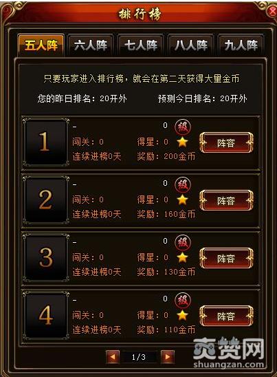 5、次日,针对不同阵容的玩家我们分开排名,只要玩家进入排行榜,就会在第二天获得大量金币。