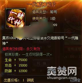 玩家可以在“积分商城”消耗500积分兑换一代赌神称号碎片,集齐1000块碎片了之后便能立即激活该永久绝版称号。
