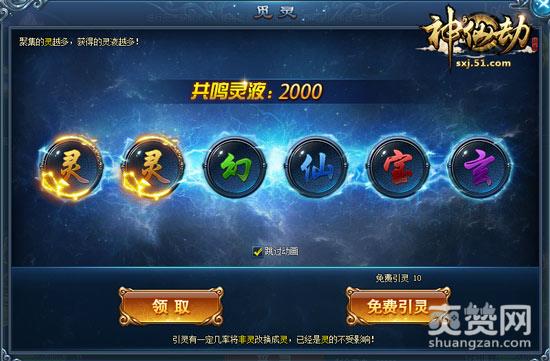 神器之间可发生共鸣,可使用灵液提升神器之间的共鸣点等级,获得更高属性。神器各共鸣点升级需要其子共鸣点达到一定等级,提升共鸣点等级需要共鸣灵液,可通过寻觅玩法获得。每次寻觅随机获得几个灵字,获得灵越多,结算得到的共鸣灵液越多,玩家通过“通天引灵”将所有的非灵改换成灵,以获得更多的共鸣灵液点亮共鸣点,获取到成吨的伤害加成,同时更可以点亮特殊属性,让你的神器更加强大。