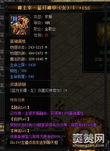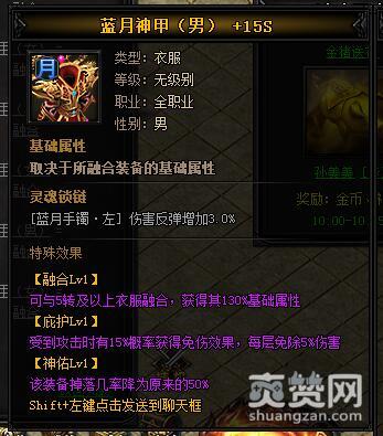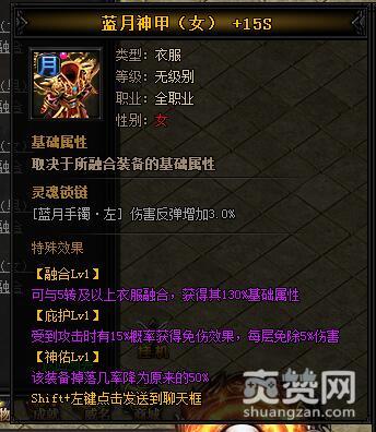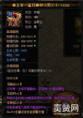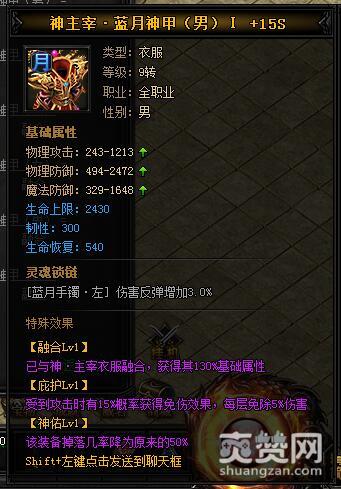 按照上述公式,就能合成神主宰·蓝月神甲I,下面再让我们看一下它有哪些独特的属性和特殊效果吧。