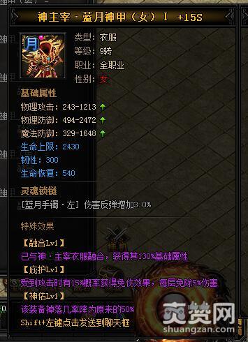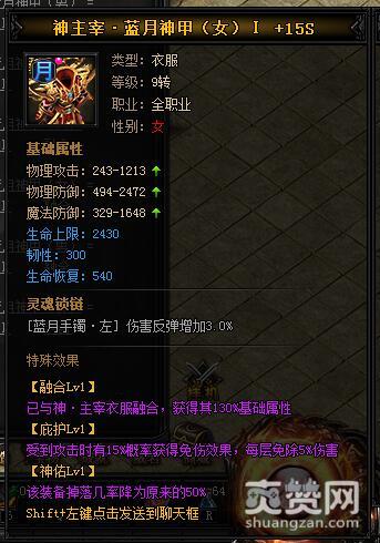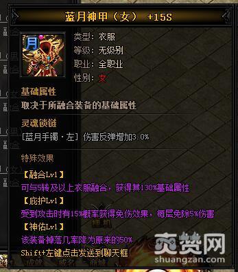 按照上述公式,就能合成神主宰·蓝月神甲I,下面再让我们看一下它有哪些独特的属性和特殊效果吧。