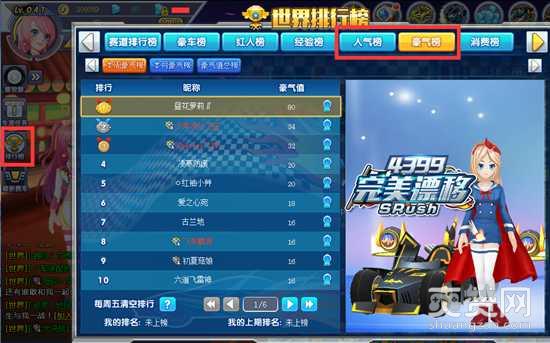 人气值和豪气值得到提升,都可进入世界排行榜。
