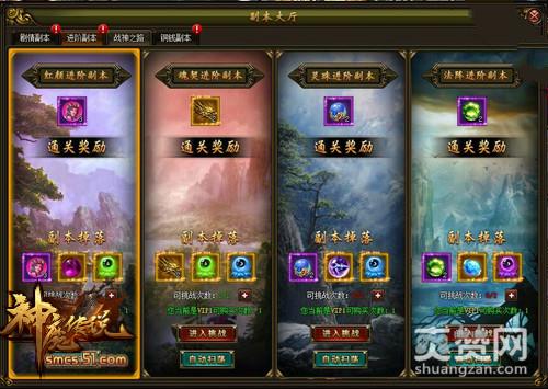 不管在什么游戏中,各种各样的副本就是我们升级以及获得装备最快速的方法,当然,根据现在副本越来越完善,经验副本、装备副本。材料副本等都划分的十分详细,但不变的是依旧是我们每日的日常,而在51《神魔传说》中,特色副本随处可见,那么接下来就赶紧跟着小编来看看吧!在51《神魔传说》的剧情副本中,玩家通关天界破敌、后山风云、邪魔初现和迷影重重等剧情后,可获取妖焚花、碧云木和阴鬼藤等合成装备所需的材料,而VIP用户还可以一键扫荡剧情副本,所以非常的方便,而在战神之路副本中,玩家通过闯关模式击败敌人可以获得绑元和铜钱奖励。