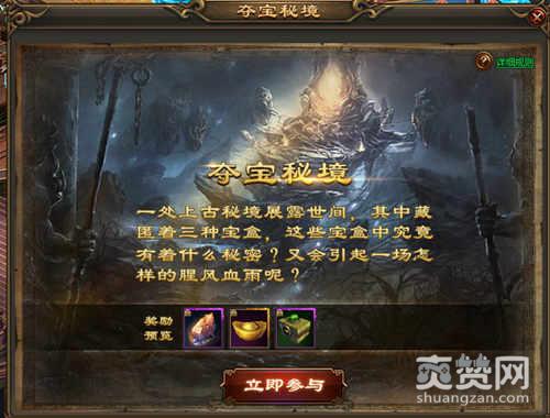 在602《乾坤战纪》有多种特色玩法可以使玩家获得各种高级装备和神器,如夺宝秘境、斗智答题、神魔大厅等,只要人物等级达到45级即可参与,挑战成功后会获得丰厚经验奖励,除此之外还有大量强化石、绑定元宝和宝石盒轻松到手,仙品宝箱和风暴宝箱还有几率获得极其罕有的成长石和资质石,想想都让人激动不已!