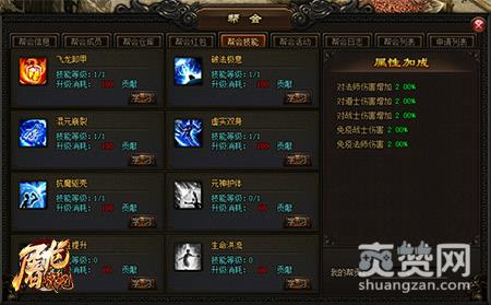 帮会内所有成员可以一起参加团队型帮会活动,兄弟们一起PK才更爽,通过参加活动还可以获得大量的奖励哦。帮会日志中记录着帮会成员的一些操作行为,装备的捐献、兑换,金币的捐赠情况等;帮会列表中记录着游戏内所有的帮会情况,并且还可以对敌对的帮会发起帮会战,击杀敌对帮会的玩家不会增加红名。