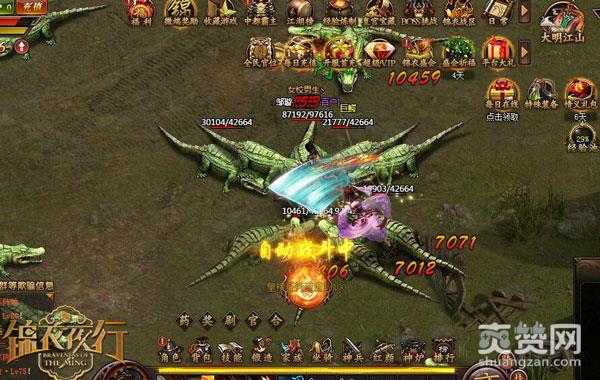 锦衣卫巡逻于街上,见有皇榜告示贴在公告栏上,“水灾弥漫,巨鳄上岸”上面悬赏捕捉100头巨鳄就可以获得丰富的奖励,身为正义锦衣卫的你一向秉着为民除害的原则,撕下皇榜,飞速赶往灾区。另一队锦衣卫人马也正在与巨鳄搏斗,你也加入为民除害的队伍。皇榜任务每天都偶可以刷新,只要完成就可以获得一定的奖励。