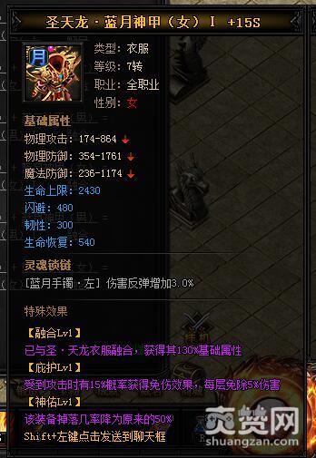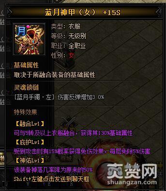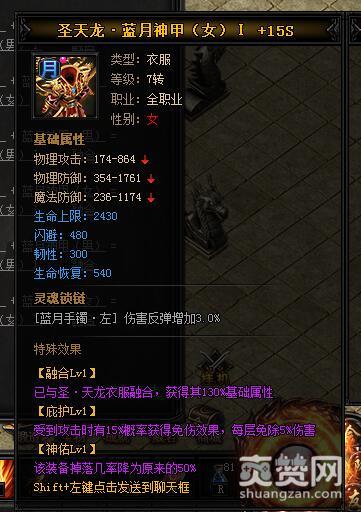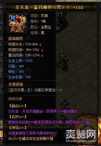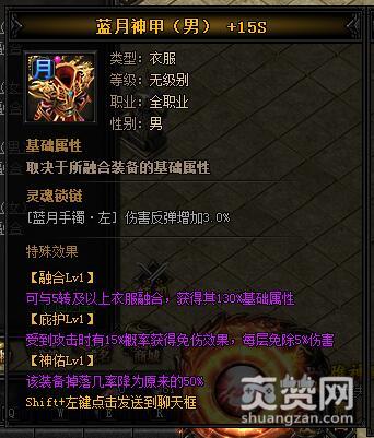 按照上述公式,就能合成圣天龙·蓝月神甲I,下面再让我们看一下它有哪些独特的属性和特殊效果吧。