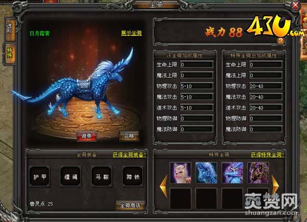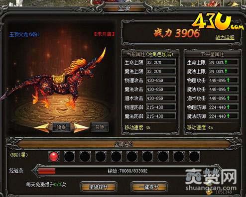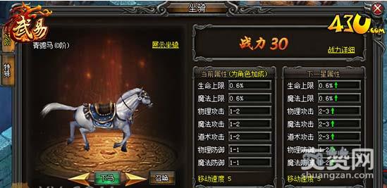 作为43u《武易》新推出的系统,玩家在32级时自主激活,系统会赠送玩家一匹初始坐骑“靑骢马”作为过渡,当然它的外形也就一般般啦。但对玩家的移速提升还是有很大帮助的。