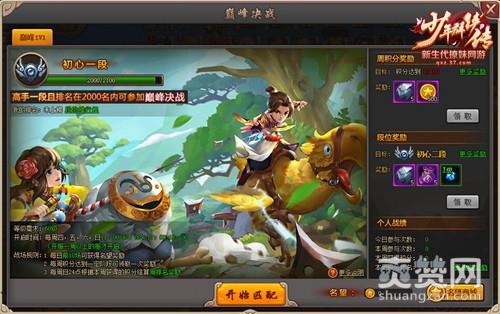 “巅峰1v1”是37《少年群侠传》面向实力型玩家推出的1v1 PK玩法,活动逢周四至周日开启,每天2场,所有60级或以上的玩家都可以通过主界面上的“巅峰决战”窗口登上PK擂台。“巅峰1v1”采用快速的跨服战力匹配机制,玩家将在擂台上直面来自不同区服的高手大神,与他们一决高下,共同争夺段位排行榜的首位之名。