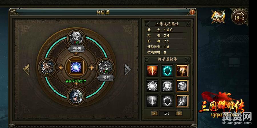 激活技能:传功:将领死亡时有20%几率将怒气随机传给己方1个将领。