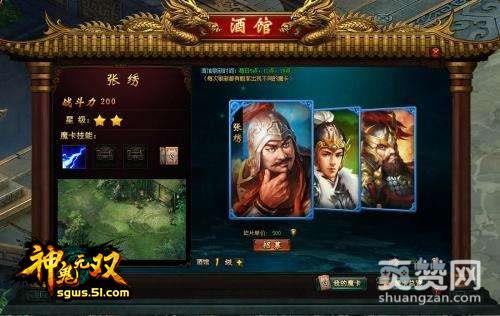 在51《神鬼无双》中的酒馆当中就是英雄遍地的景象,大家可以在这个酒馆当中获取魔卡碎片,游戏中的魔卡碎片是需要使用声望兑换的,而声望的获取可以在游戏中各种玩法中获取。
