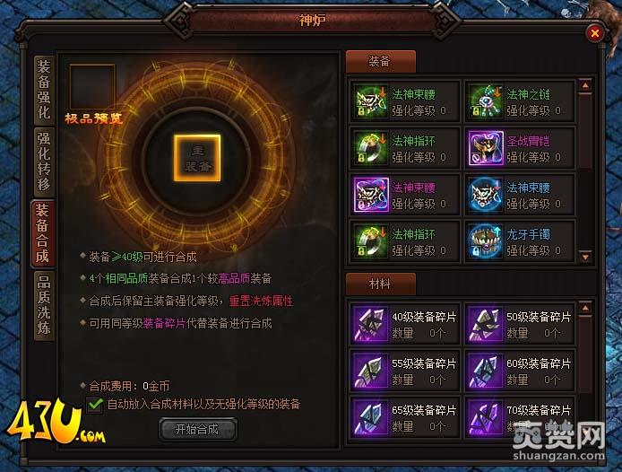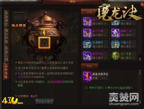 你玩游戏时是否有过这样的困惑,明明装备相差无几,却被别人完爆,可能是你没有好好了解43u《魔龙诀》最新推出的神炉系统。锻造神炉是玛法大陆上手艺精良的铁匠们特地为广大英雄所准备的。作为43u《魔龙诀》最基本同时也是最重要的系统之一,神炉里为玩家们提供四种提升装备属性的途径——装备强化、强化转移、装备合成、品质洗练。