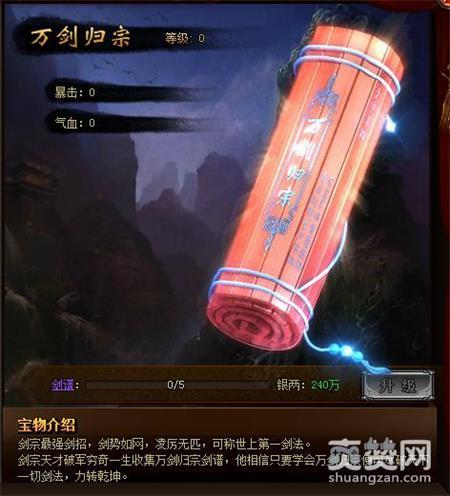 玩家通过收集宝物升级材料升级宝物,宝物等级越高,给玩家加成的属性越多。