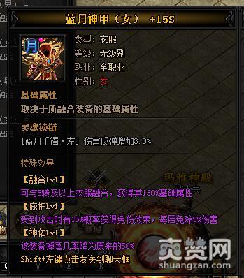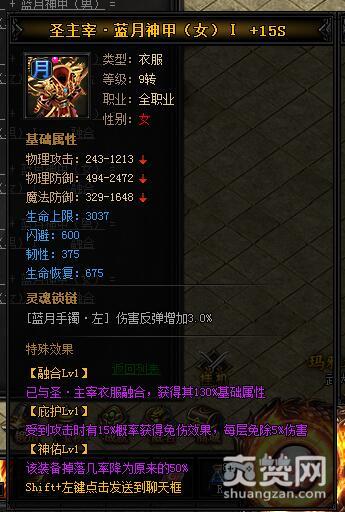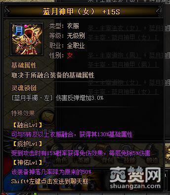 按照上述公式,就能合成圣主宰·蓝月神甲I,下面再让我们看一下它有哪些独特的属性和特殊效果吧。