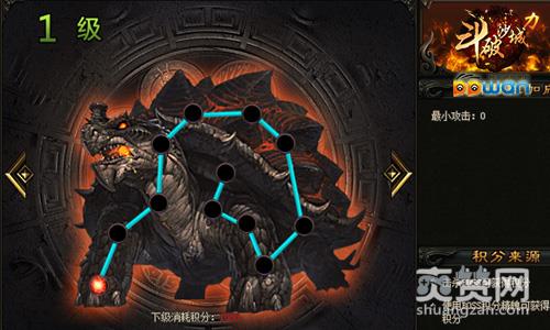 当玩家在ppwan《斗破沙城》中的BOSS积分达到一定数值时,首先可以激活四象中的玄武,从玄武1依次激活到玄武12,每激活一个玄武点就可以获得一项属性加成,最大攻击、最小攻击、最小物防、最大物防……随着玄武点数的依次激活,所消耗的BOSS积分也将越来越多,所获得的属性加成也会越来越多!