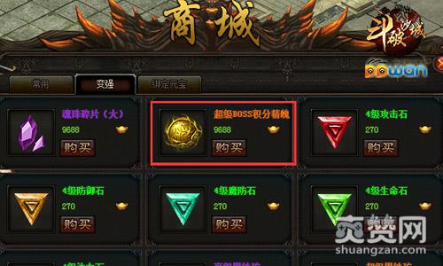 在ppwan《斗破沙城》中,当玩家玄武全部激活后就可开启四象之朱雀,然后是四象之白虎,最后则是四象之青龙。但是要想在ppwan《斗破沙城》中将四方神灵全部激活,将要消耗无数的BOSS积分,仅仅靠击杀BOSS是远远不够的。因此,ppwan《斗破沙城》中还有一个快捷获得积分的方法,那就是使用BOSS积分精魄,可在商城中直接购买BOSS积分精魄,双击使用后将会获得大量的BOSS积分,迅速提升实力!