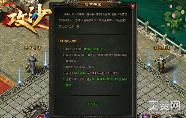 1、地下夺宝是一个定时活动,每周开启一次,活动开启后玩家可进入地下宫殿夺宝;
