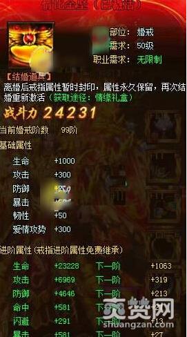 进阶属性99阶婚戒示例: