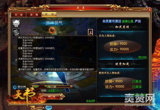 哥们网《天书世界》的龙灵系统,玩家可以得到大量的基础属性加成:龙灵带来的生命属性、灵笔带来的防御和法力属性。