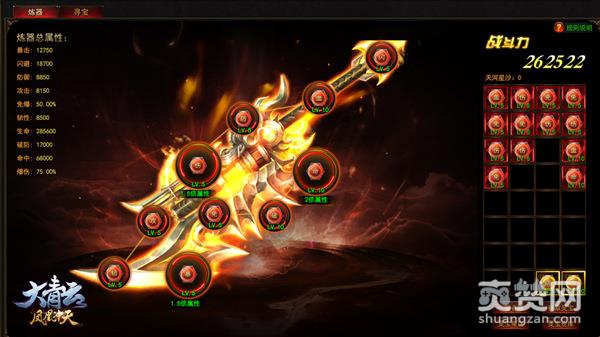 在《大青云》里,炼器系统中分为炼器和寻宝两个部分。炼器随2转(200级)解锁,一共10个镶嵌位,每个镶嵌位可镶嵌不同属性的灵宝,其中有两个特殊镶嵌位提供1.5倍属性加成,一个特殊镶嵌位提供2倍属性加成。