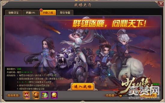 问鼎之战是《4399少年群侠传》众武林高手问鼎天下的见证。九层战场,群英怒战,登顶者方为侠之大成者,巅峰问鼎!《4399少年群侠传》官方网站:http://my.4399.com/yxsnqxz/玩家等级达到40级时,可以参与问鼎之战;活动开启时,通过右上角图标、战场大厅、活动大厅可参与该活动。开启时间:19:00-19:30。