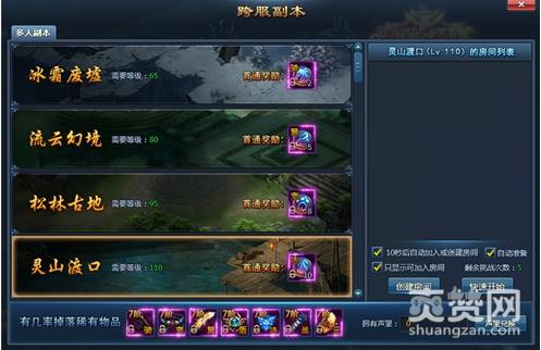 首先是跨服组队服,主要分为冰霜废墟、流云幻境、松林古地、灵山渡口、桃源迷域、狮驼荒原、东海龙宫共六个装备副本。
