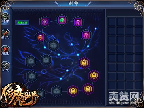 传说盘古大神将灵魂之火融入天外陨石之中,形成“印石”,佩戴印石者可大幅增加自身属性,应对各种困境,更有极少部分印石具有让人起死回生等特殊功能,让世人为之癫狂。第一颗印石将在玩家提升至33级时自动获取,玩家可以将所获印石放入印刻系统纹路之内,直接提高角色能力。印石可以通过“精工”和“雕琢”来加强自身属性,印石的属性越高,就越能提高玩家的战力。
