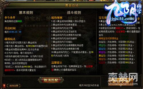 在游戏里,玩家的等级到达60级才能允许进入战场。同时黄金战场也不是任何时间都可以进去的,每天的10:00-24:00黄金战场才会被开启哦!玩家进入黄金战场即会刷出6只BOSS,同时战场开启后10分钟,将会刷新出一只超级BOSS,击杀即可获得大量的宝石哦!