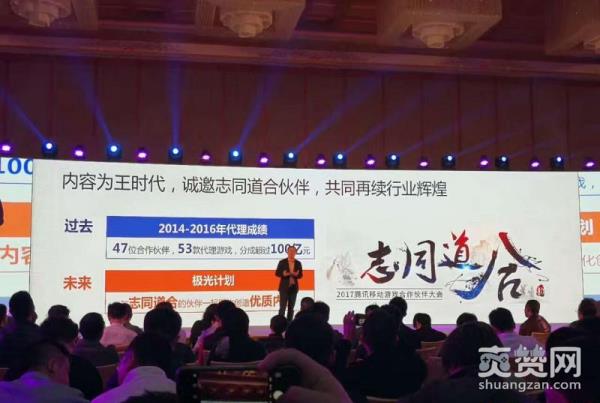 大会上,腾讯游戏副总裁吕鹏介绍,2014年-2016年腾讯在移动游戏领域已拥有47位合作伙伴、53款代理游戏、分成超过100亿元。未来,腾讯将致力于推出“极光计划”,与志同道合的伙伴一起孵化创造优质内容。