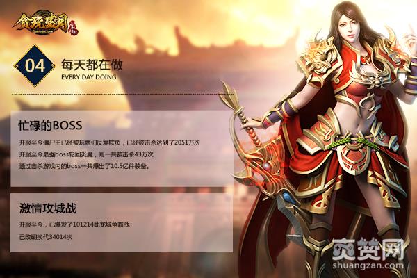 开服至今,僵尸王已经被玩家们反复欺负,已经被击杀达到了2051万次。最强boss轮回炎魔,则一共被击杀43万次,通过击杀游戏内的boss一共爆出了10.5亿件装备。玩家成功强化装备超过25亿次,+10以上装备出现了1247466件,玩家死亡掉落的装备数量达到了647410件。此外,游戏内已爆发了101214次龙城争霸战,已改朝换代34014次。