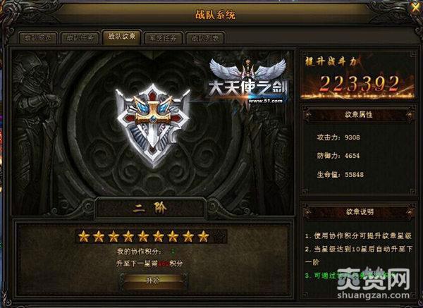 51《大天使之剑》的玩家完成军资任务可以收集军资,每日0点系统将所有成员收集的军资总和累加到战队军资中,当军资累积达到一定数量时,可以获得奖励,战队军资每周一0点重置,玩家可以消耗协作积分来提升自己的战队纹章等级,纹章升级可增加角色属性。