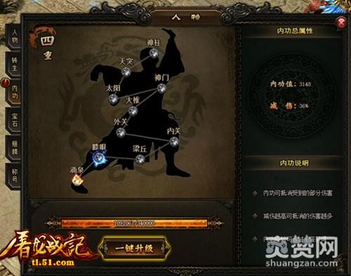 大战在即,前方等待你的将是无穷的挑战和一波又一波的敌人,因此做好战前准备十分重要,提升内功是增加自身战力的一个重要途径,内功原本是武林宗师修习的护身法门,现在不仅是习武之人,道士和法师也开始用内功来保护自己,51《屠龙战记》内功系统上线,开启提升战力的大门。内功系统对于PK打怪十分重要,内功可减免大量的伤害,大大减少PK打怪中被秒杀的几率,相当于一个护盾,可以抵消一部分玩家所受到的伤害,同时内功值拥有上限(上限值与内功等级挂钩),可随时间自行恢复,内功等级越高内功值、减伤就越高,同时可以抵消的伤害就越多,内功经验可通过打怪获得,满值后需要手动点击升级,所以为了在大战之时将敌军一举歼灭,勇士们还需苦练内功,提升内功等级。