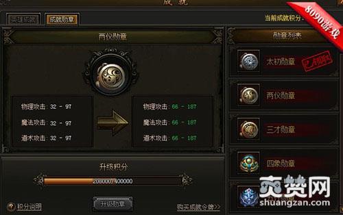 成就完成不仅仅有金钱的奖励还会有成就积分,成就的积分可以兑换成就勋章,有太初勋章,两仪勋章,三才勋章,四象勋章等等!那么就会有小伙伴问,这么多勋章要来干嘛用呢?勋章自带增强物理攻击,魔法攻击和道术攻击。有了勋章,在升级打怪刷副本的时候就跟家方便啦!介绍了这么多,小伙伴们是不是已经摩拳擦掌啦,那就快来传奇霸业赶紧来体验一下拿到手软的超级福利!