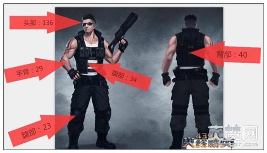 从“伤害测试图”中可以看到AN94小熊猫爆头可以一枪致命;腹部需要3枪;背部需要3枪;腿部5枪;手臂4枪。