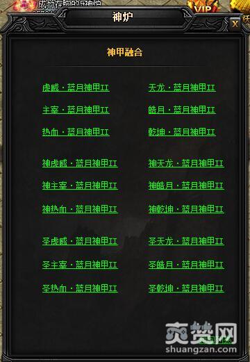 要合成神皓月·蓝月神甲II,有六种公式。是特有武器作为合成素材,并且需要蓝月神甲作为媒介支撑。