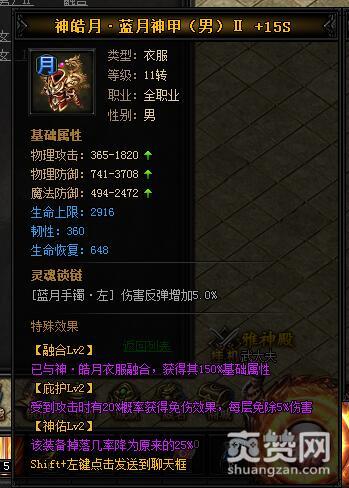 按照上述公式,就能合成神皓月·蓝月神甲II,下面再让我们看一下它有哪些独特的属性和特殊效果吧。