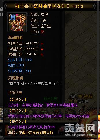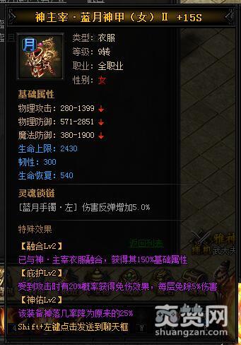 按照上述公式,就能合成神主宰·蓝月神甲II,下面再让我们看一下它有哪些独特的属性和特殊效果吧。