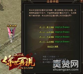攻击大于60000、80000的玩家点击铁血城NPC【圣兽神殿】—【挑战狂?神兽】可进入狂·至尊朱雀或者狂·至尊玄武,神兽每20小时刷新一次。神兽拥有强大的技能与攻击,必须拥有强大的实力,并且配合各职业方可挑战。击杀至尊圣兽BOSS,将有机会获得神器、神甲、13转武器、14转首饰等极品道具。